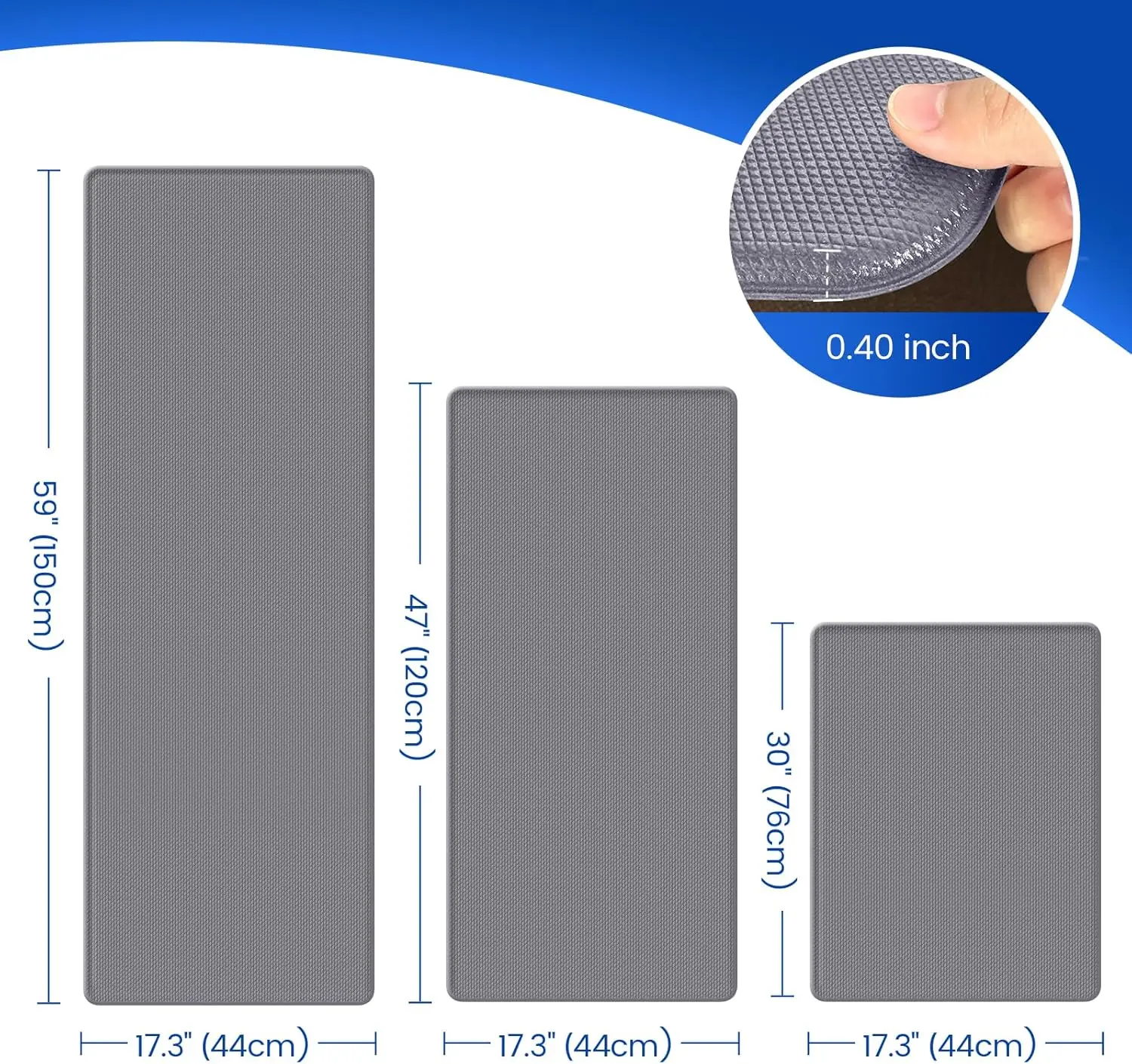 3PCS Non-Slip Anti-Fatigue Kitchen Floor Mats, Waterproof Cushioned Standing Comfort Rugs for Office, Grey
