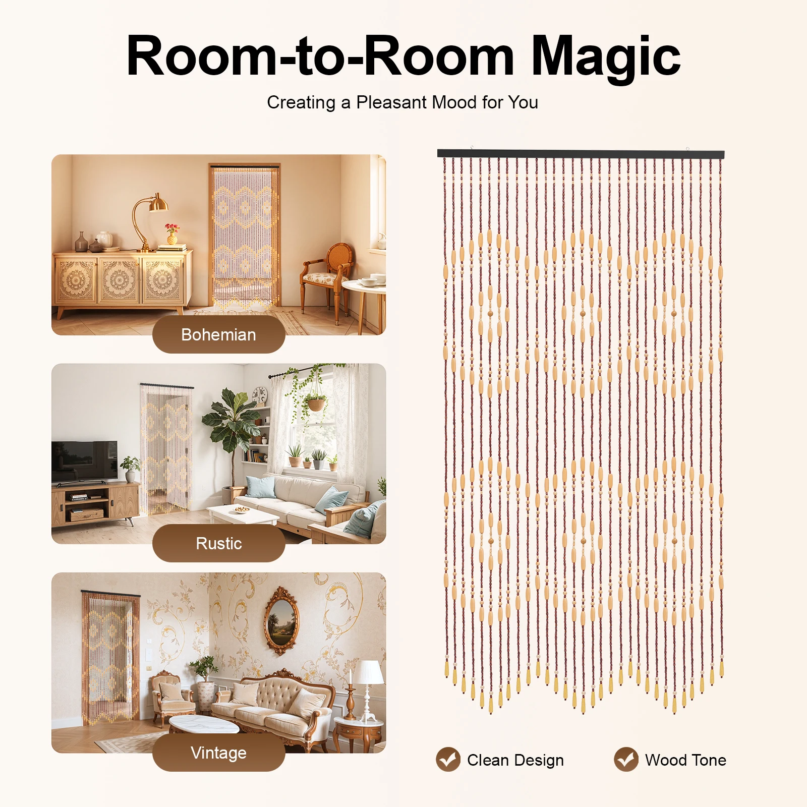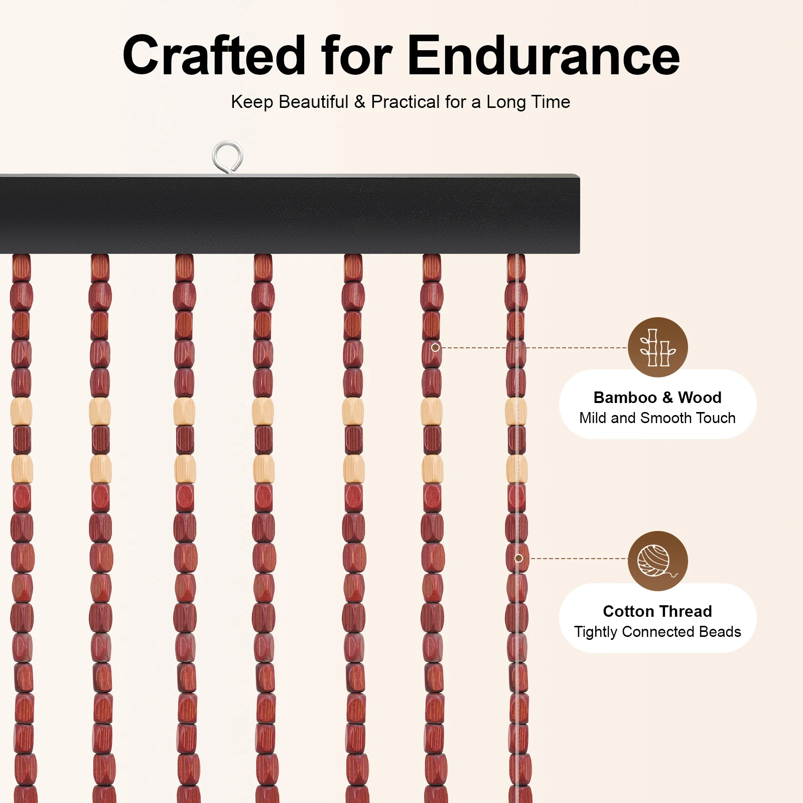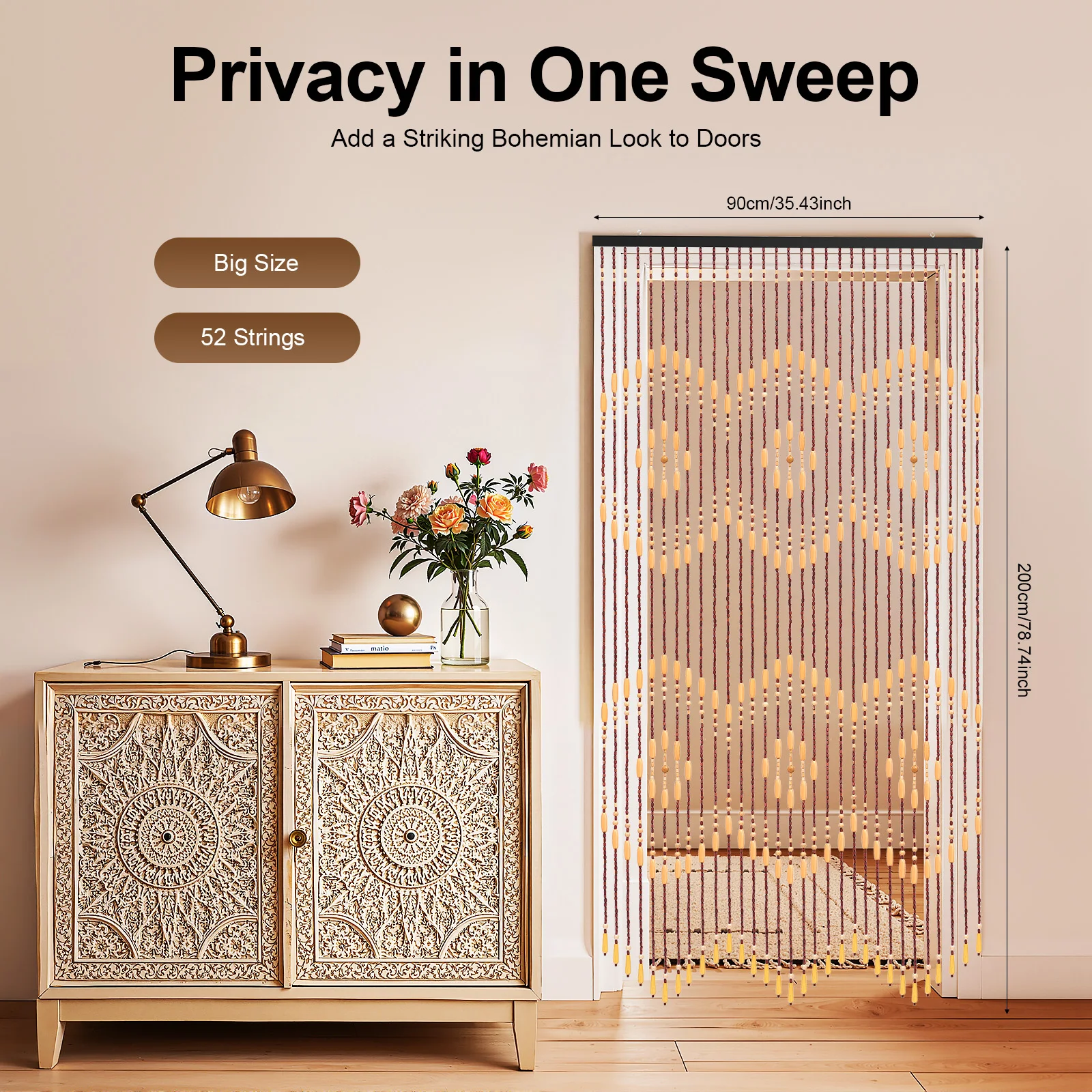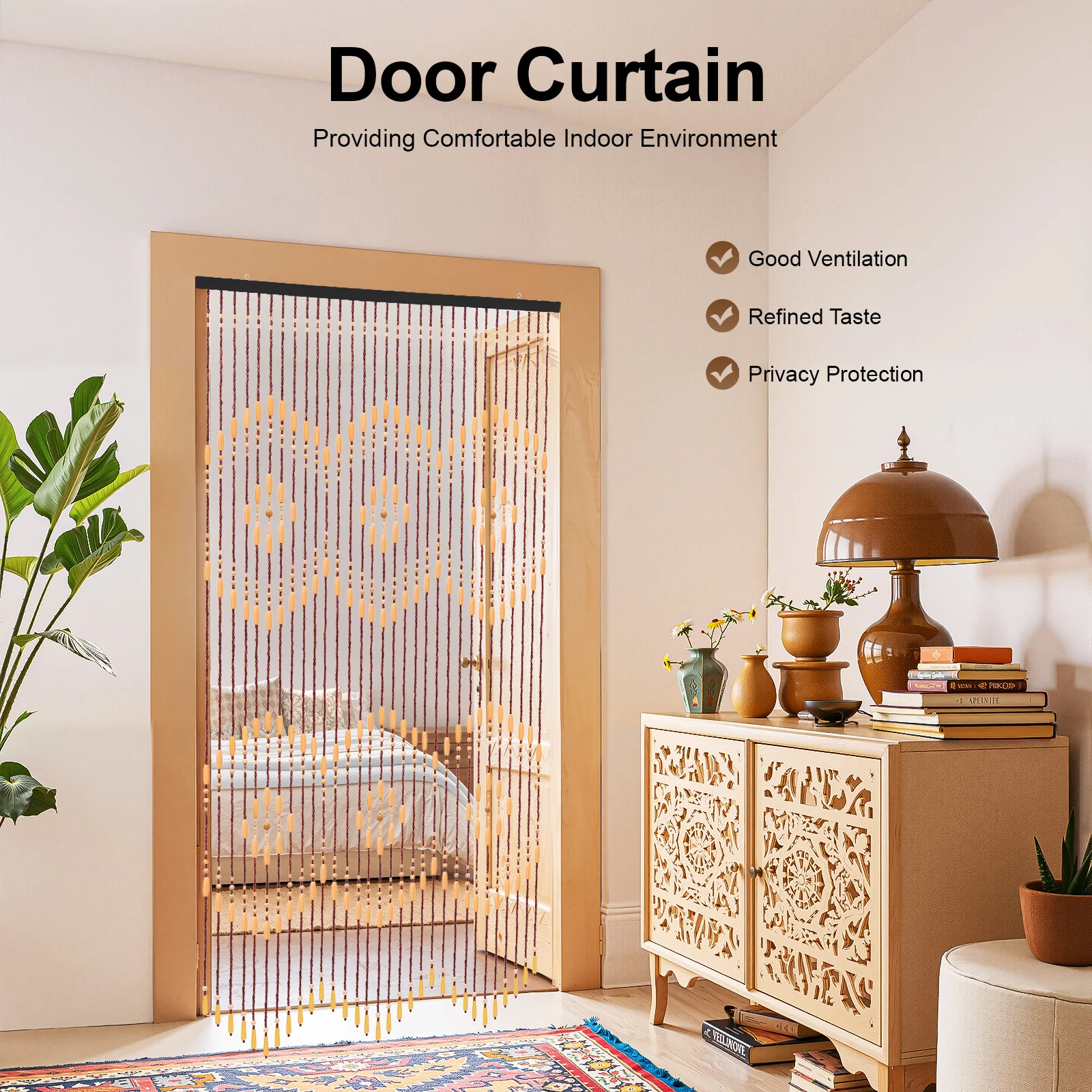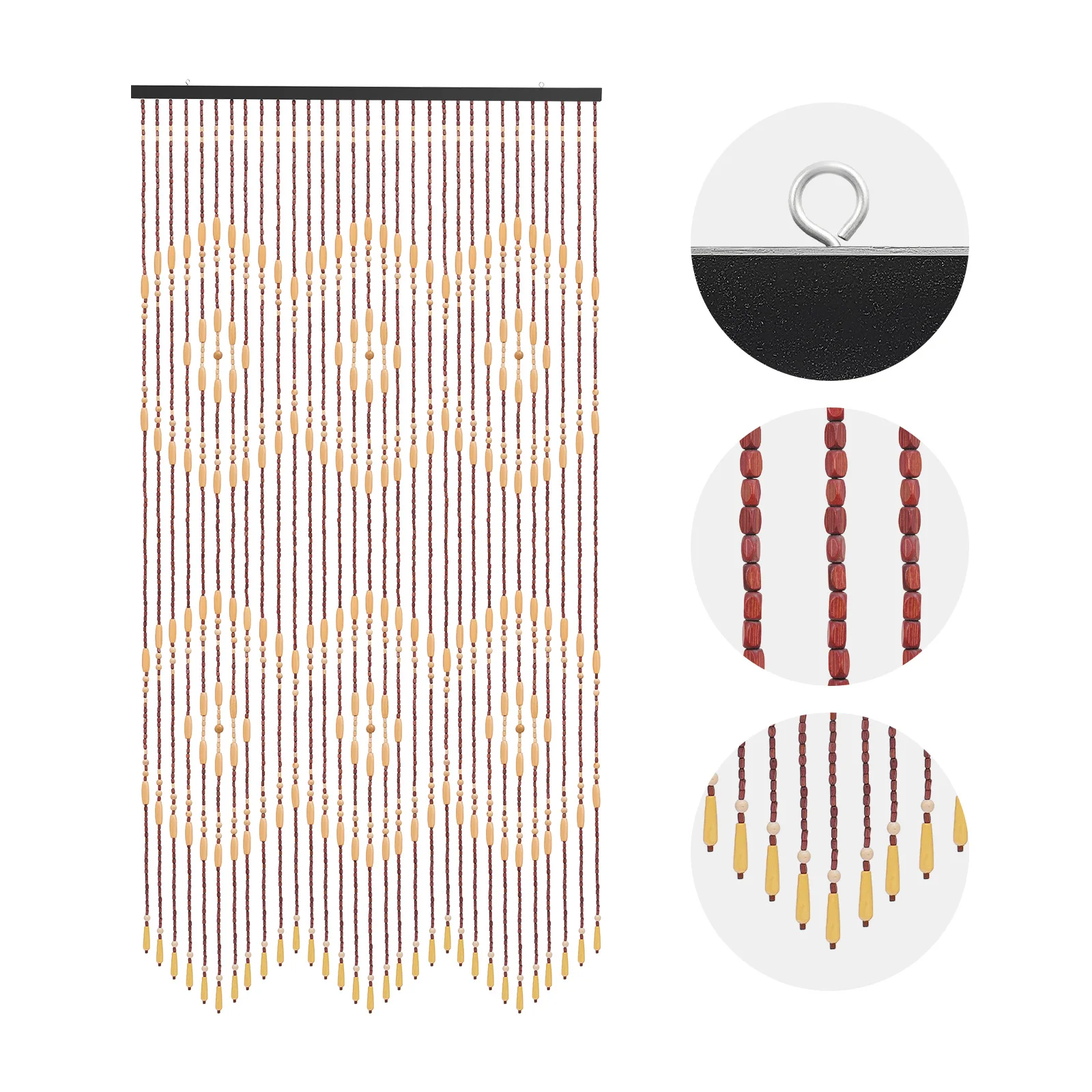 78.74x35.43in Bamboo Beaded Door Curtain, Chinese Classical Wood Bead Divider for Porch, Bedroom, Living Room, Store Decor