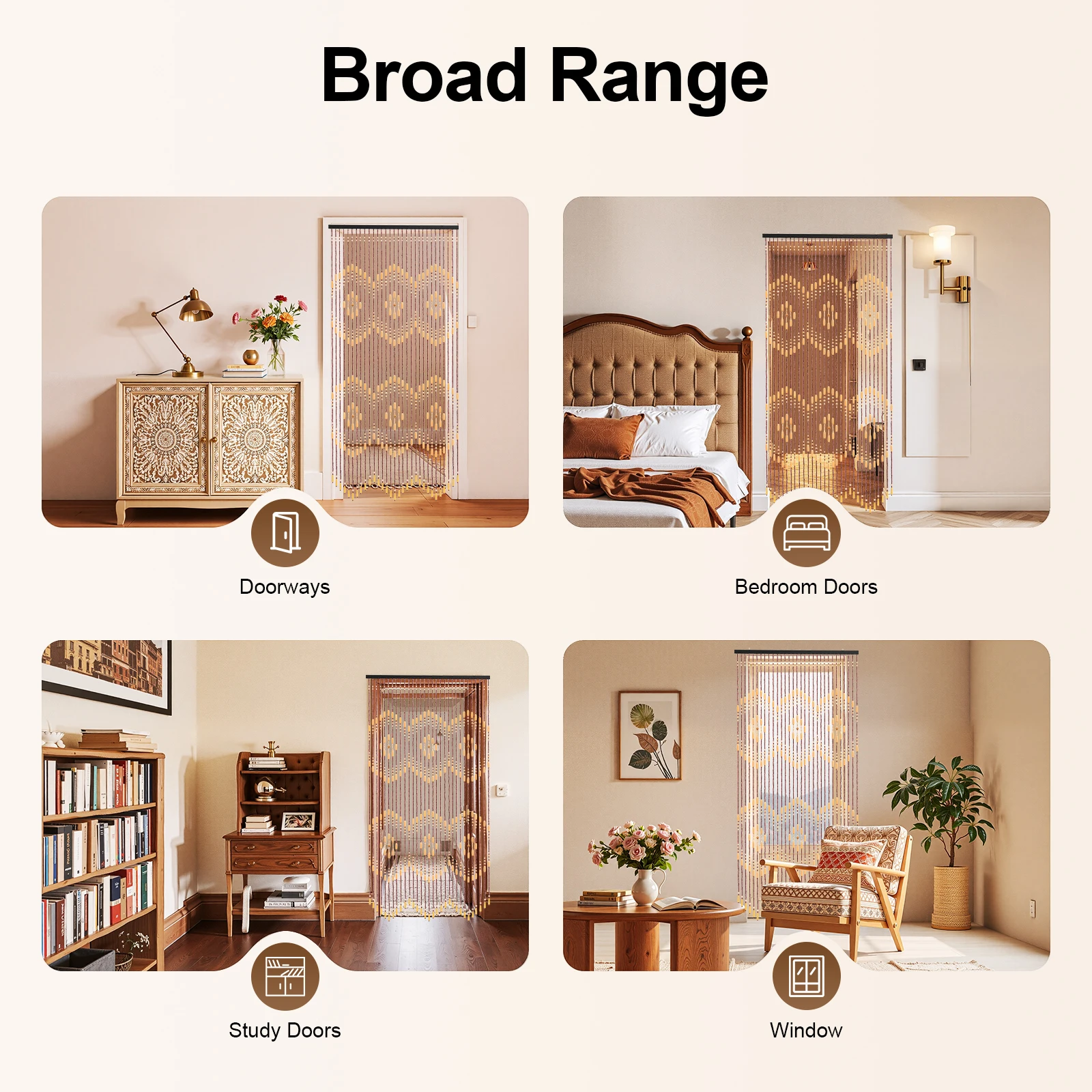 A beautiful door curtain can add beauty and mystery to your room and showcase the owner's refined taste. Our door curtain is made of premium materials to ensure practicality and aesthetics. Whether you install it on the front door, study door, or bedroom door of your home, it will become a distinctive feature, infusing the space with artistic soul. Such a fine piece is truly the ideal choice for decorating your home. We invite you to own it now and let beauty transform your life.