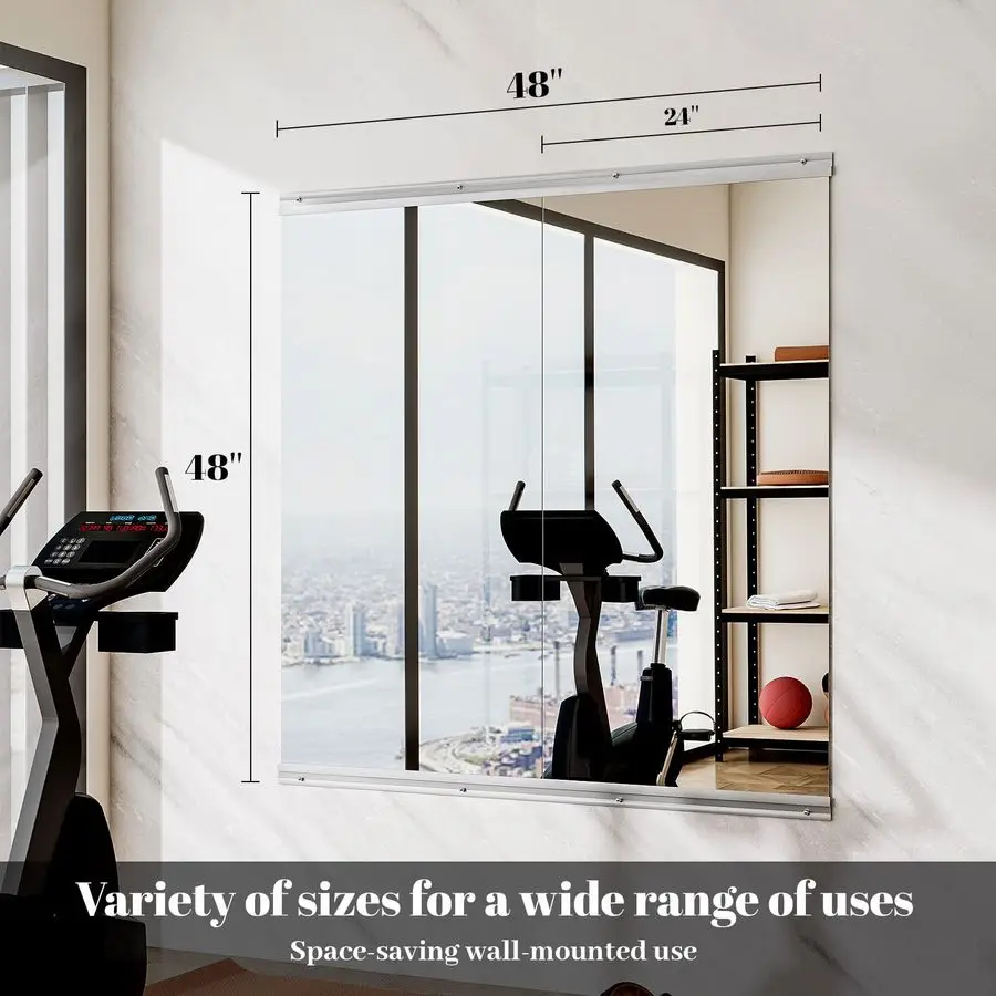SpaceSaving RoomBrightening Wall Mounted home gym mirror full length visually expand your home gym space while enhancing light. Perfect for garages, or basement gyms